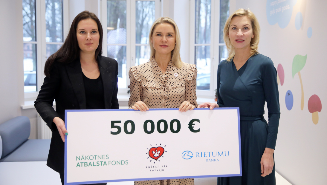 Rietumu Bank and the charity foundation "Nākotnes Atbalsta Fonds" (Future Supporting Fund) founded by it participated in the campaign “Angels Above Latvia”, donating a significant amount to the treatment of children in the amount of 50,000 euros, which allows the campaign to get significantly closer to the goal of this year campaign – to help 187 children throughout Latvia.