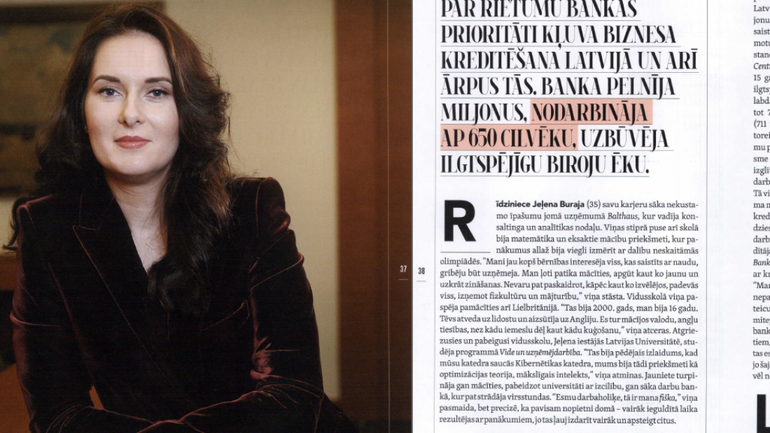 Ar Forbes redakcijas atļauju publicējam rakstu «Strukturēšanas eksperte», kas ir veltīts Rietumu Bankas valdes priekšsēdētājai Jeļenai Burajai.