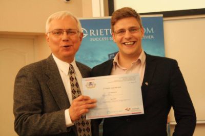 Īpašo Rietumu Bankas balvu par savu pētījumu stārtapu sfērā saņēma RISEBA studente Karīna Busa. Balvu un diplomu viņai pasniedza Rietumu Bankas viceprezidents Renāts Lokomets.