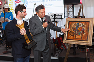 Sacensību noslēgumā labākajiem spēlētājiem tika pasniegti kausi un balvas, bet turnīra uzvarētājs saņēma galveno balvu – Kazahstānas vēstnieka Kausu. Īpašu turnīra kausu – kazahu meistaru veidoto samazinātu monumenta Baiterek kopiju – vēstnieks nodeva glabāšanā Rietumu Bankas valdes loceklim Renātam Lokometam.