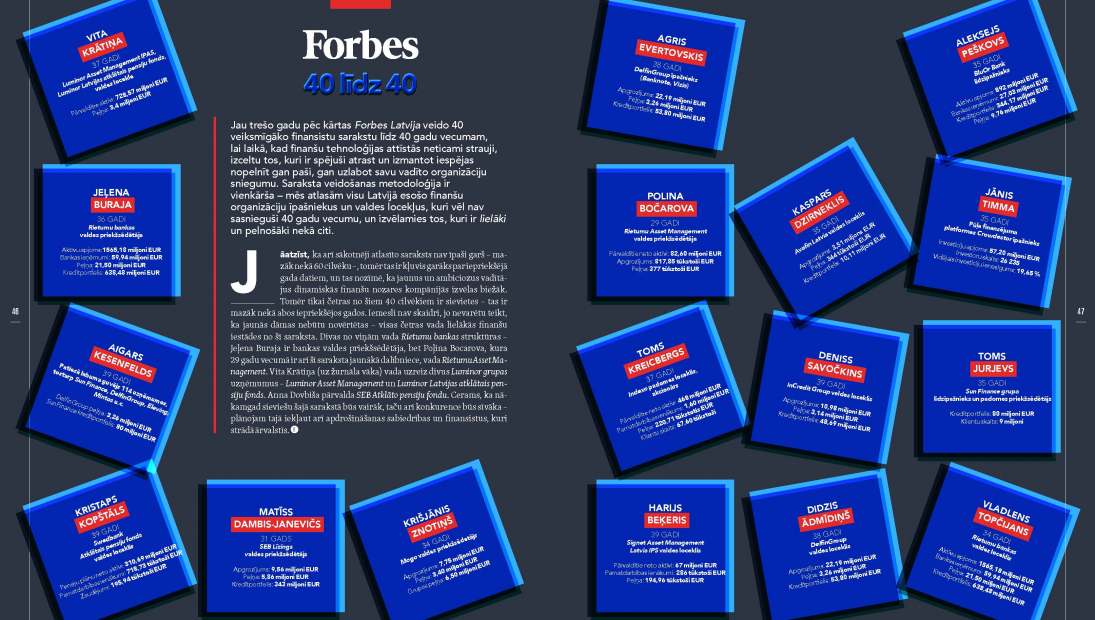 Журнал Forbes опубликовал топ лидеров финансовой отрасли Латвии «40 до 40».