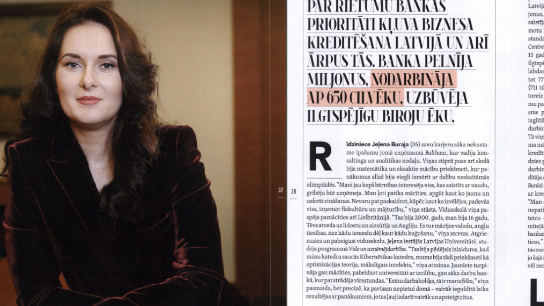 Центральным материалом латвийского Forbes в марте стала статья «Strukturēšanas eksperte» (Эксперт по структурированию) – о председателе Правления Rietumu Елене Бурой.