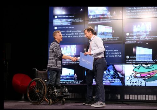 Кульминацией конференции стало награждение финалиста конкурса, который состоялся ранее в помещении банка Rietumu. На конкурс поступило более чем 50 заявок из разных стран мира, в том числе из Балтии, России, Беларуси, Египта и других стран. В банке Rietumu были отобраны 5 лучших стартапов из 10: Toona, Levidera, Facety, Sorry as a service, Dropbyke.