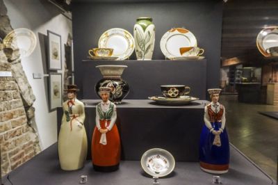 Ранее, в XIX веке Рига была центром хорошо налаженного производства фарфора – здесь с 1841 г. работала одна из семи фабрик Товарищества Кузнецовых, а с 1886 года – мануфактура немецкого предпринимателя Якоба Ессена. В 1930-е годы Никлавс Струнке (1894-1966 гг.) сотрудничал с фарфоровой фабрикой Ессена и работал над созданием единого стиля общественного интерьера, разрабатывал эскизы росписи декоративных тарелок и ваз, различных функциональных бытовых предметов. На этой фабрике по эскизам художника были изготовлены графинчики в виде фигурок девушек и юношей в народных костюмах для знаменитого рижского ресторана «Отто Шварц».