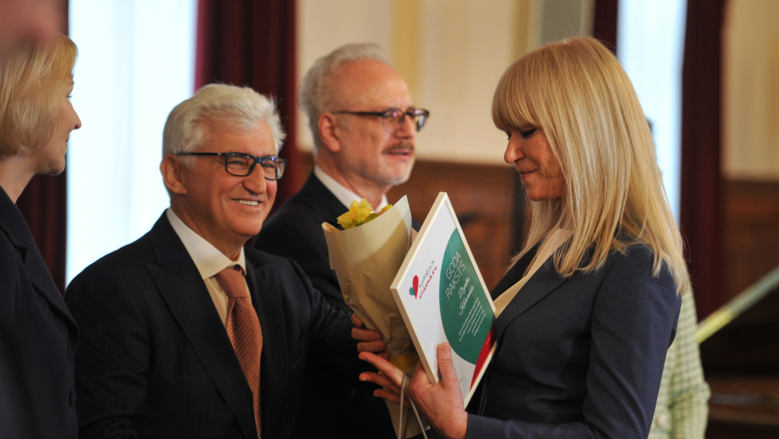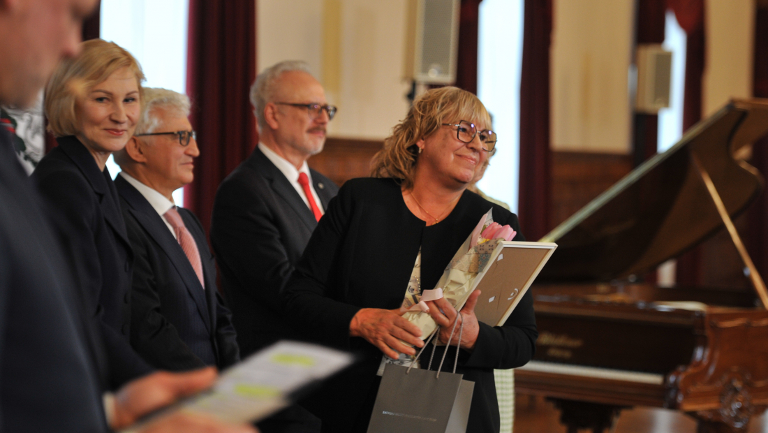 Медсестер сердечно поздравили и вручили им награды президент Латвии Эгилс Левитс и его супруга патронесса конкурса Андра Левите, председатель Совета фонда Аркадий Сухаренко, член Совета фонда Елена Бурая, председатель Правления фонда Инга Шина.